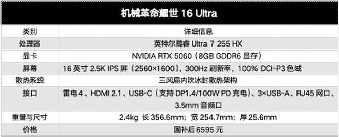 机械革命耀世16 Ultra:300W静音性能怪兽