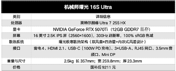 机械师曙光16S Ultra:3A游戏+专业创作+小组协作,一机全搞定