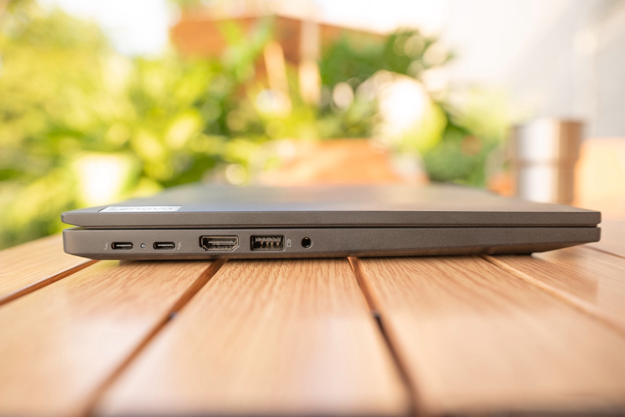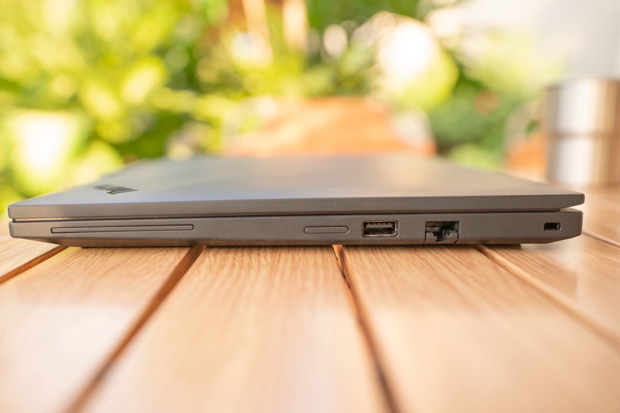 接口方面,T14 Gen 6 在轻薄机身内依旧保留了丰富的配置。机身左侧配备两个USB4 接口,不仅支持高速数据传输和多屏扩展,还支持最高 100W PD 充电,为移动办公带来更灵活的供电选择。与此同时,还提供 HDMI 2.1、USB-A 3.2 Gen1(支持关机充电)和 3.5mm 音频接口;机身右侧则配备 RJ45 网口和 USB-A 3.2 Gen1,满足多种商务场景的扩展需求。