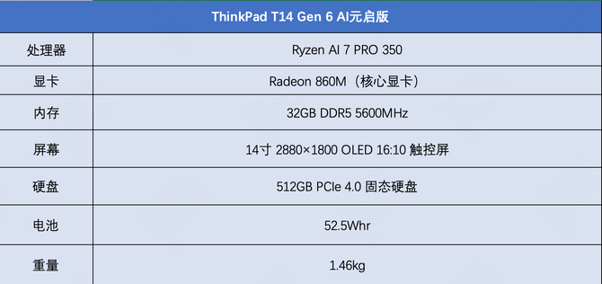 在AI PC快速普及的2025年,商务笔记本的核心竞争点已经不仅是性能与续航,AI算力同样成为重要指标。作为ThinkPad家族的中坚力量,全新T14 Gen 6 AI元启版搭载了AMD锐龙AI 7 Pro 350处理器,不仅在传统办公场景下表现出色,在AI应用、续航以及图形性能方面同样有着明显优势。本文将结合测试数据,为大家解析这款商务轻薄本的实际体验。