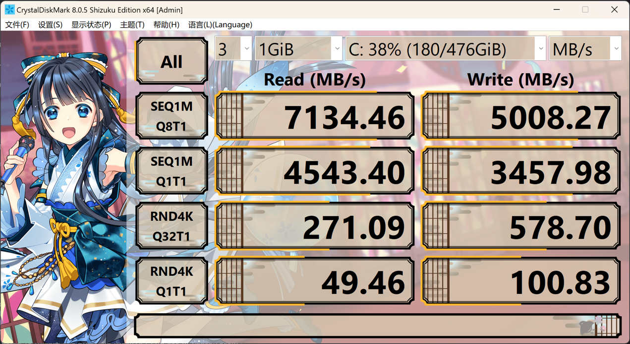 存储与内存测试同样表现出色。CrystalDiskMark 测试结果显示,固态硬盘顺序读取速度 7134 MB/s,写入速度 5008 MB/s;AIDA64 内存测试中,读取速度 62494 MB/s,写入速度高达 86340 MB/s。这样的组合为系统响应、多任务处理以及大型文件传输提供了充分的性能保障。