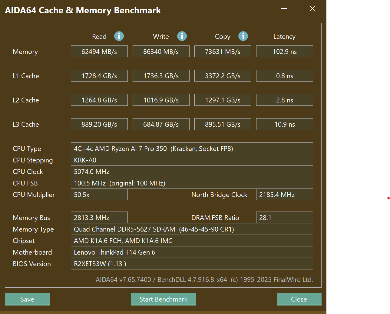 整体来看,T14 Gen 6 在理论性能测试中的表现全面且稳定,兼顾了高效多核性能、快速存储响应和不错的图形处理能力,符合高端商务轻薄本的定位。