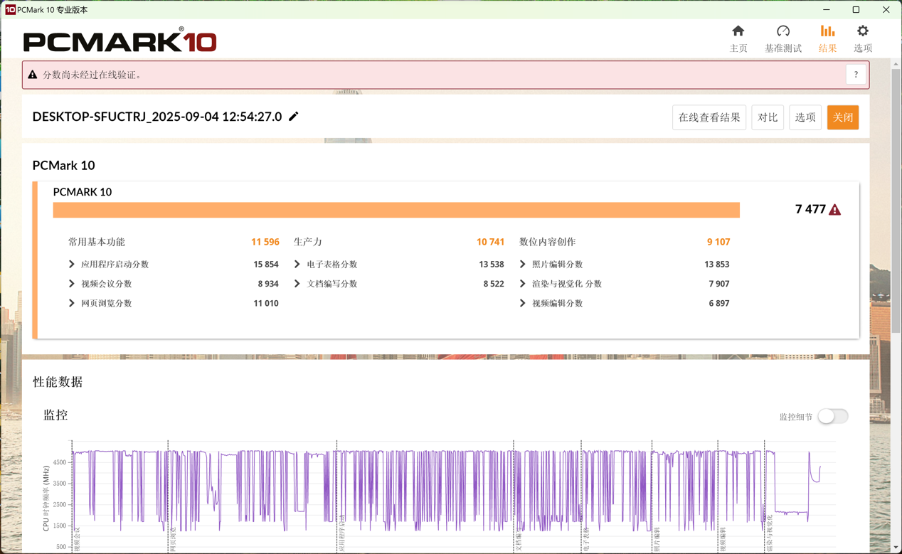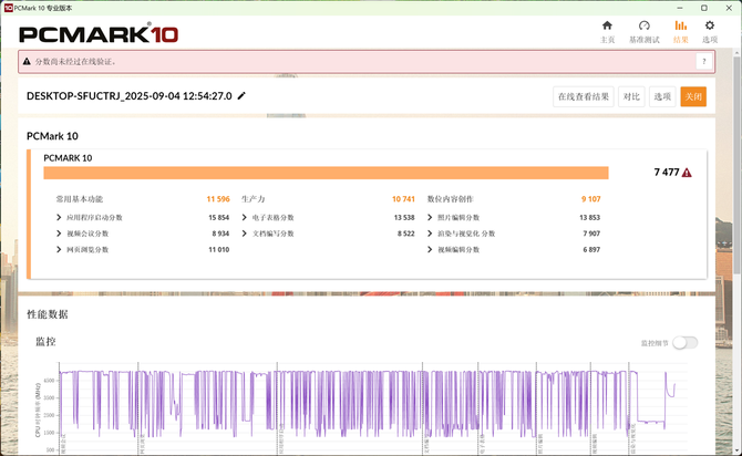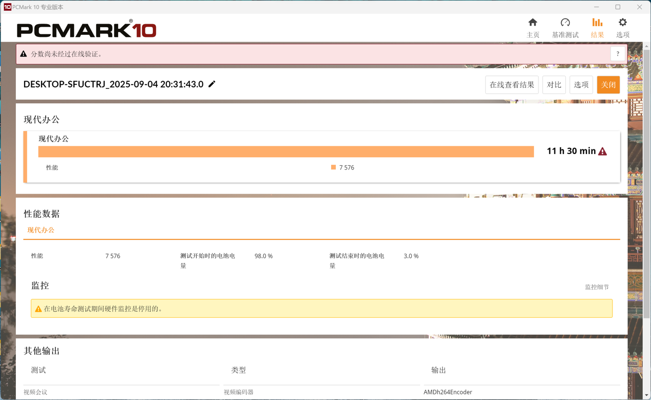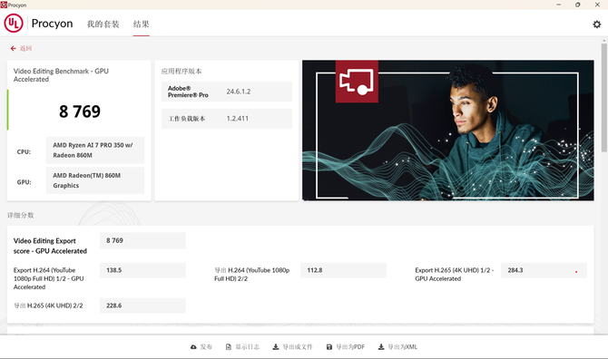 在 Procyon 视频剪辑基准测试中,该机调用 Adobe Premiere Pro 进行素材加载、时间线预览与导出等核心流程,最终得分 8769 分。虽然定位商务,但它依旧能够胜任轻量化的视频处理需求,对于自媒体用户或需要偶尔进行多媒体创作的商务人士而言,这一表现提供了额外的灵活性。