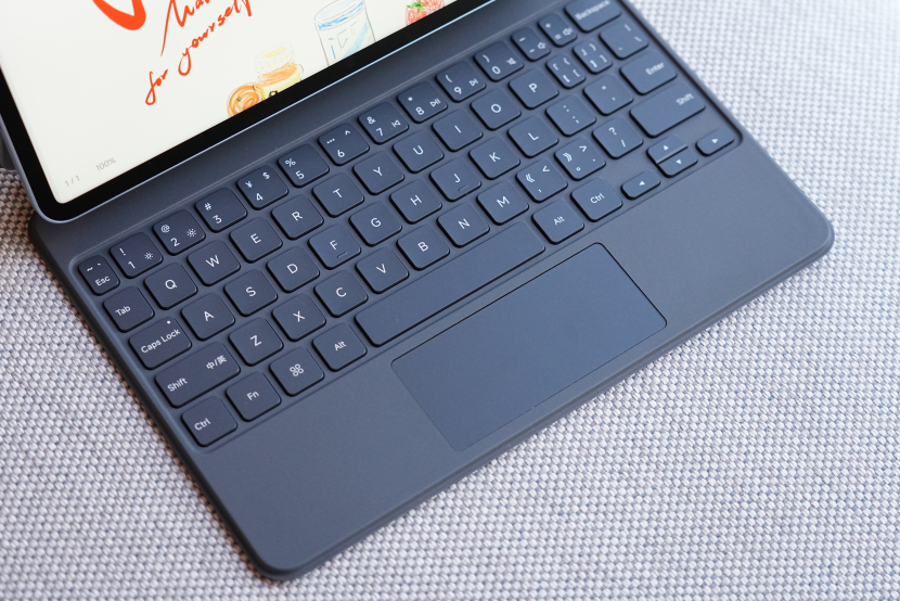 搭配悬浮键盘,0-124° 自由悬停,阻尼适中,单手即可调整角度。磁吸连接设计摒弃裸露触点,配合背光键盘和触控板,码字体验已经超过很多笔记本电脑。