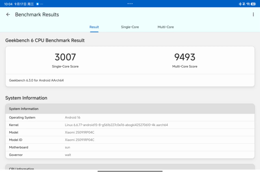 GeekBench 6单核分数达到3007,多核心达到9493,这个分数同样旗舰水准。