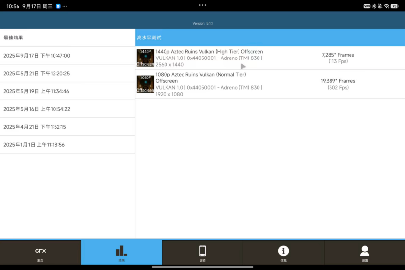 GFXBench的Aztec 1440p实测113 fps,1080p则为302FPS,这样的水平在GPU性能能够实现高帧数游戏性能表现。在游戏性能表现方面,30 分钟《原神》跑图平均帧率 59.1 fps,机身最高温度 41.7 ℃,散热表现远胜上代。