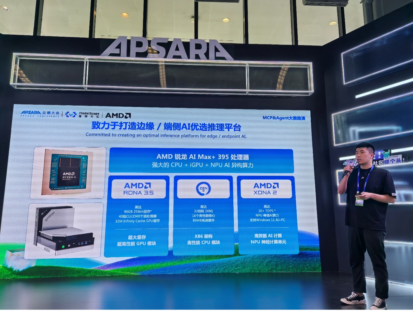 2025年9月24日, 2025 魔搭社区MCP&Agent挑战赛在杭州云栖大会现场落下帷幕。当日,AMD 创新赛道初赛胜出的20支团队齐聚现场,进行了最后的决赛路演。经过一天的激烈角逐,入围决赛的20支参赛团队展示了以基于AMD锐龙AI MAX+ 395处理器的Mini AI工作站为硬件平台的端侧智能体创新应用,覆盖多媒体处理、教育辅助、医疗健康、工业知识、生活助手等多个前沿领域。