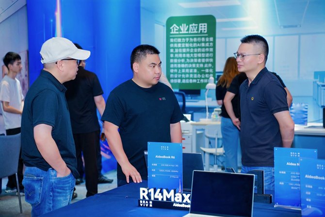 在这一框架下,基于AMD锐龙AI Max+ 395处理器的全系列产品成为战略承载的关键。 胡仁江系统介绍了产品布局,包括已上市的AideaStation R1迷你工作站、体积更小的R2、一体机形态的R27、兼具存储与计算能力的AI NAS,以及面向便携需求的R14系列 AIPC 笔记本电脑。