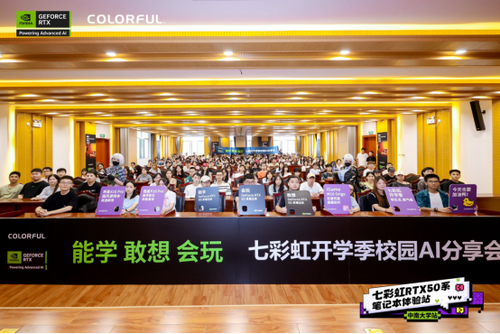 除了丰富的体验活动,七彩虹还注重与各高校的学术氛围深度融合。首站于中南大学特别增设的“校园AI分享会”,成为整个系列活动的知识高地。分享会现场座无虚席,学生们表现出对AI技术的浓厚兴趣,认真倾听、积极提问,展现了当代大学生渴求新知、敢于探索的精神风貌。