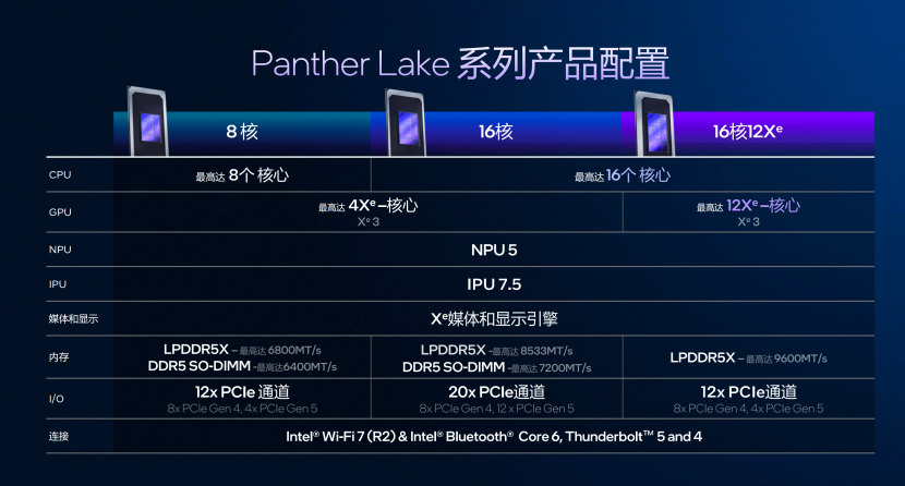 在无线连接和图像处理方面,Panther Lake 的 Wi-Fi 7、蓝牙 6.0 和 IPU7.5 技术,为用户带来了更快速、更稳定、更智能的连接和视觉体验。这些技术的升级,不仅提升了设备的实用性,更让用户在日常使用中感受到科技带来的便利和乐趣。