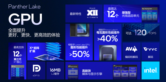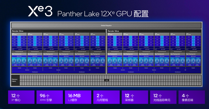 Panther Lake 的 GPU 部分采用了全新的 Xe3 架构,这是英特尔在图形处理领域的又一次重大创新。Xe3 架构在性能和效率上都进行了显著提升,为用户带来了更强大的图形处理能力和更流畅的视觉体验。