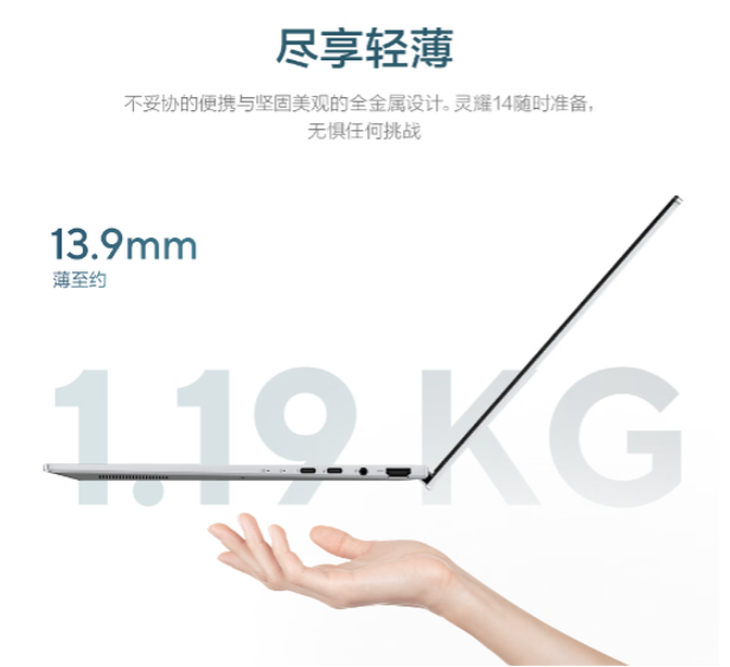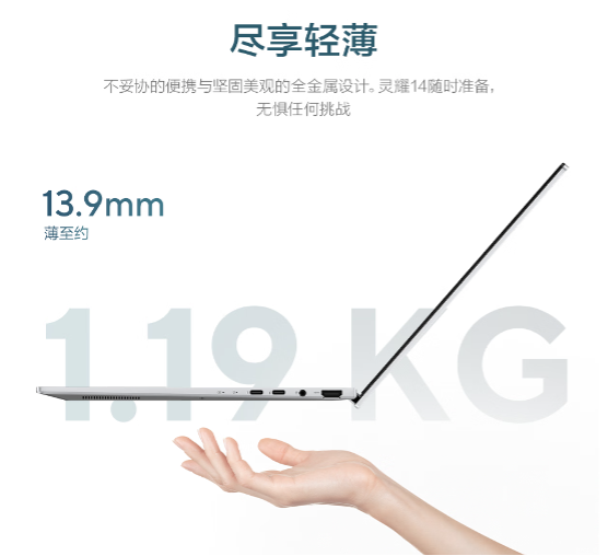 高频出差的人更懂它的好:轻约1.19kg ,薄至13.9mm,能轻松塞进各类通勤包,14英寸黄金尺寸机身,就算是小巧的手提包也能轻松置入,无感介入各类场景。