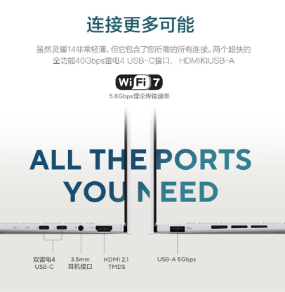 第二代Ultra 9处理器的极致能耗比加上75Wh大电池撑得起约18小时本地1080P视频播放,华硕灵耀14 2025还支持PD充电,带上充电宝就能随时为它充电,机场候机再也不用找插座,出差在外紧急会议也能惬意应对。
