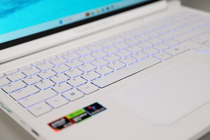 键盘方面,雷神猎刃 S Ultra 采用了下沉式设计的全尺寸 RGB 键盘,键盘的键程适中,按键反馈清晰,手感出色,能够满足玩家长时间游戏操作的需求。而且,键盘支持 RGB 背光调节,用户可以根据自己的喜好自定义键盘的背光颜色和灯光效果,在黑暗的环境下使用时,不仅方便操作,还能营造出浓郁的电竞氛围。