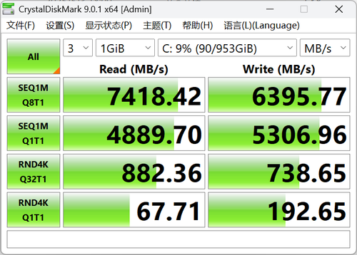 存储上,搭载了 1TB PCIe 4.0 SSD,顺序读取速度 7418.42 MB/s ,写入速度 6395.77 MB/s 左右,无论是启动系统、加载游戏还是传输大型文件,都能实现 “秒开”“秒加载” 的效果。同时,它还配备了双 M.2 接口,支持 RAID 0/1 模式,并且兼容 PCIe 5.0 SSD,用户后续可以根据自身需求进行存储升级,扩展性极强。