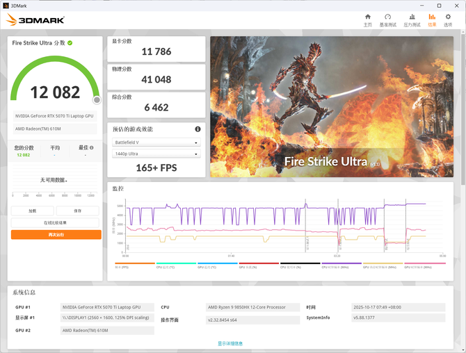 Fire Strike Ultra 的测试中,显卡得分 11786,综合得分 12082。