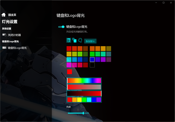 首先看看 A 面,简洁大方,经典的 RGB 镜面光盾 LOGO,LOGO 支持 RGB 灯光调节,能够通过雷神智能控制中心自定义灯光效果,比如单色、多彩或自定义,一眼具有辨识度。