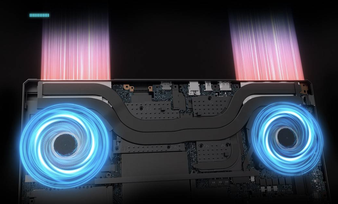 这里顺便说一下散热。雷神猎刃 S Ultra 搭载了猎刃新一代风驭散热系统,在散热设计上进行了多项升级。首先,它配备了双超薄风刃静音风扇,风扇采用了特殊的扇叶设计,能够在相同转速下产生更大的风量,同时有效降低噪音。其次,散热系统采用了四热管设计,热管的数量和布局经过了精心优化,能够快速将 CPU 和 GPU 产生的热量传导至散热鳍片。而且,笔记本还运用了相变硅脂技术,相变硅脂具有更好的导热性能和稳定性,能够在长时间使用过程中保持良好的散热效果,避免因硅脂老化导致散热性能下降。另外,散热鳍片的面积也进行了增大处理,进一步提升了散热效率。