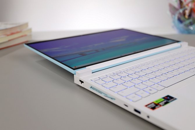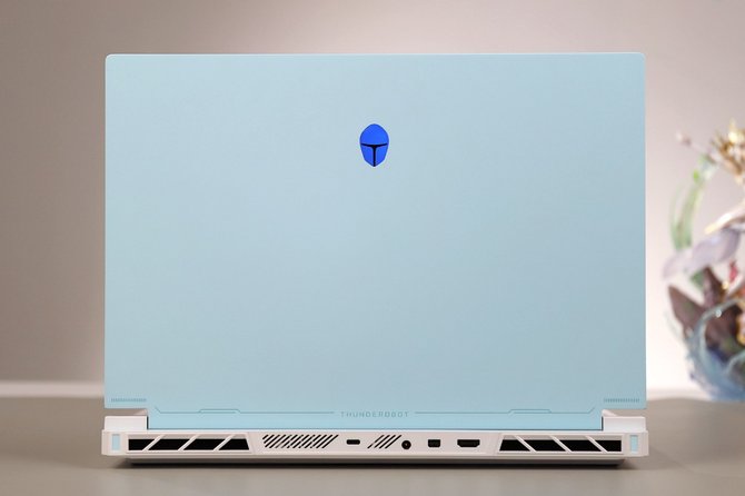 外观设计上,雷神猎刃S Ultra 给人眼前一亮的感觉,突破了传统游戏本的设计风格,采用了全新的天青配色,与白色的撞色设计,使得整机无论内外,看上去都很时尚大气,同时又不失电竞氛围。