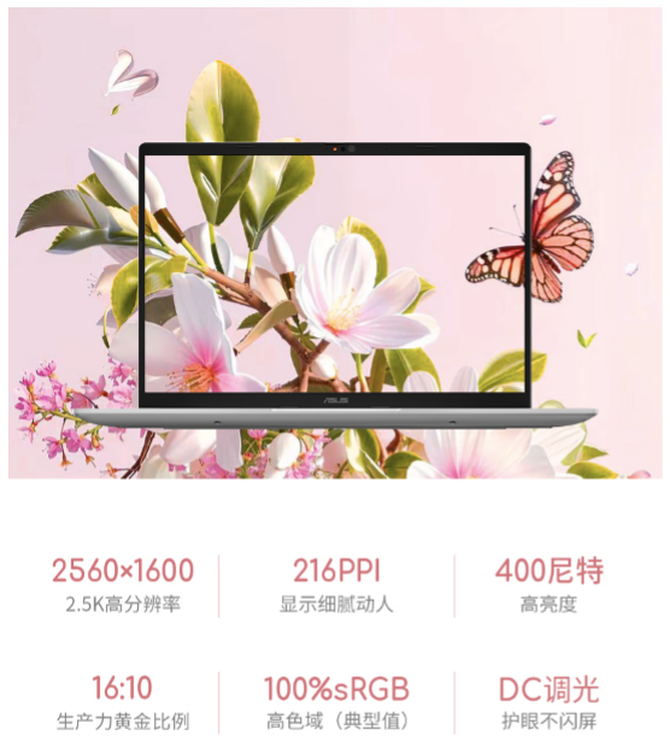 作为人机交互第 一线,华硕a豆14 Air 悦享版配备了一块2.5K超清高亮护眼屏,400nits高亮度让画面在强光下也清晰可见,搭配 100%sRGB高色域带来细腻逼真的色彩表现,校色、修图专业场景不拖后腿,日用娱乐更加生动,屏幕还通过莱茵TUV低蓝光护眼认证,减少长时间用眼的疲劳感,学生党熬夜复习、职场女生加班赶工,都能更好地保护双眼。