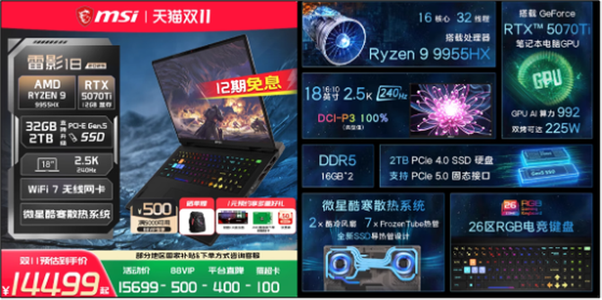 微星笔记本爆款双11全覆盖:晒单好礼加持,开门红别错过!