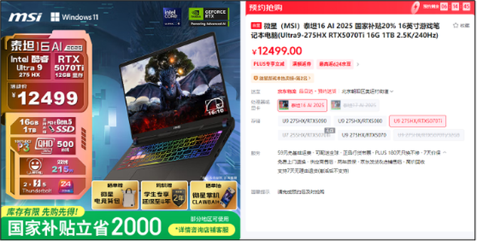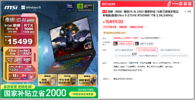 微星泰坦16 AI:爆款热度,大促持续升级