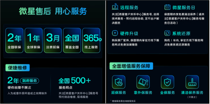 随着微星笔记本双11促销活动的全面展开,现在正是购入心仪游戏本的最佳时机。作为一线大厂微星笔记本还提供包含2年全国联保+2年到府服务的完善服务政策。