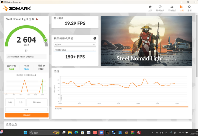 而针对轻薄型笔记本的专项测试Steel Nomad Light项目,其得分为2604分,进一步验证了核显在 “低负载图形场景” 下的适配性,日常观看 4K 视频、玩《英雄联盟》等轻度游戏时,画面流畅无掉帧。