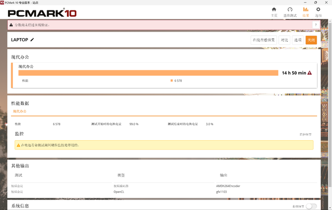 续航能力则是移动办公的“关键保障”。在PCMark 10 现代办公续航测试中,Hi MateBook 14 锐龙版的实测续航成绩为14小时50分钟,这一续航时长足以覆盖“全天办公+通勤娱乐” 需求,即便外出差旅没有地方充电,也能支撑完整的工作流程,无需频繁寻找电源。