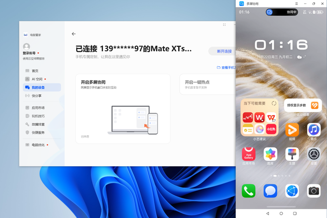 同时,机型还支持“超级终端”多设备协同功能,实现与手机的无缝连接,例如将手机中的文件拖拽至电脑编辑,或者在电脑端接收回复手机端的消息,大幅提升跨设备办公效率。