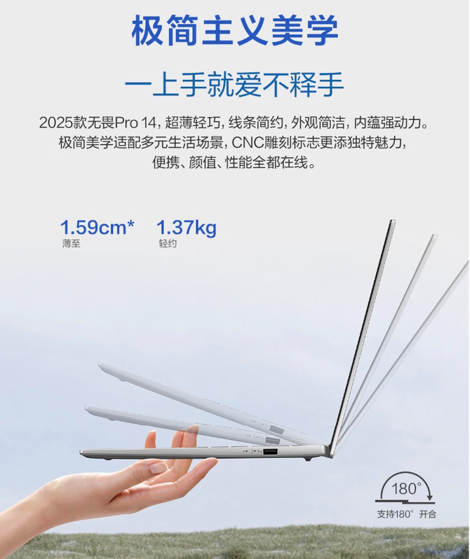 不仅性能强劲,华硕无畏Pro14 2025还兼具轻薄属性,陪你无缝切换用机场景。整机轻约1.37kg、薄至39.75px,并通过严苛品质测试,轻薄便携、坚固耐用,无惧日常磕碰。虽轻巧,机身两侧仍配备丰富接口,包括2个全功能USB-C 3.2、2个USB-A 3.2、HDMI和3.5mm音频接口,轻松满足数据传输、外设连接等需求。