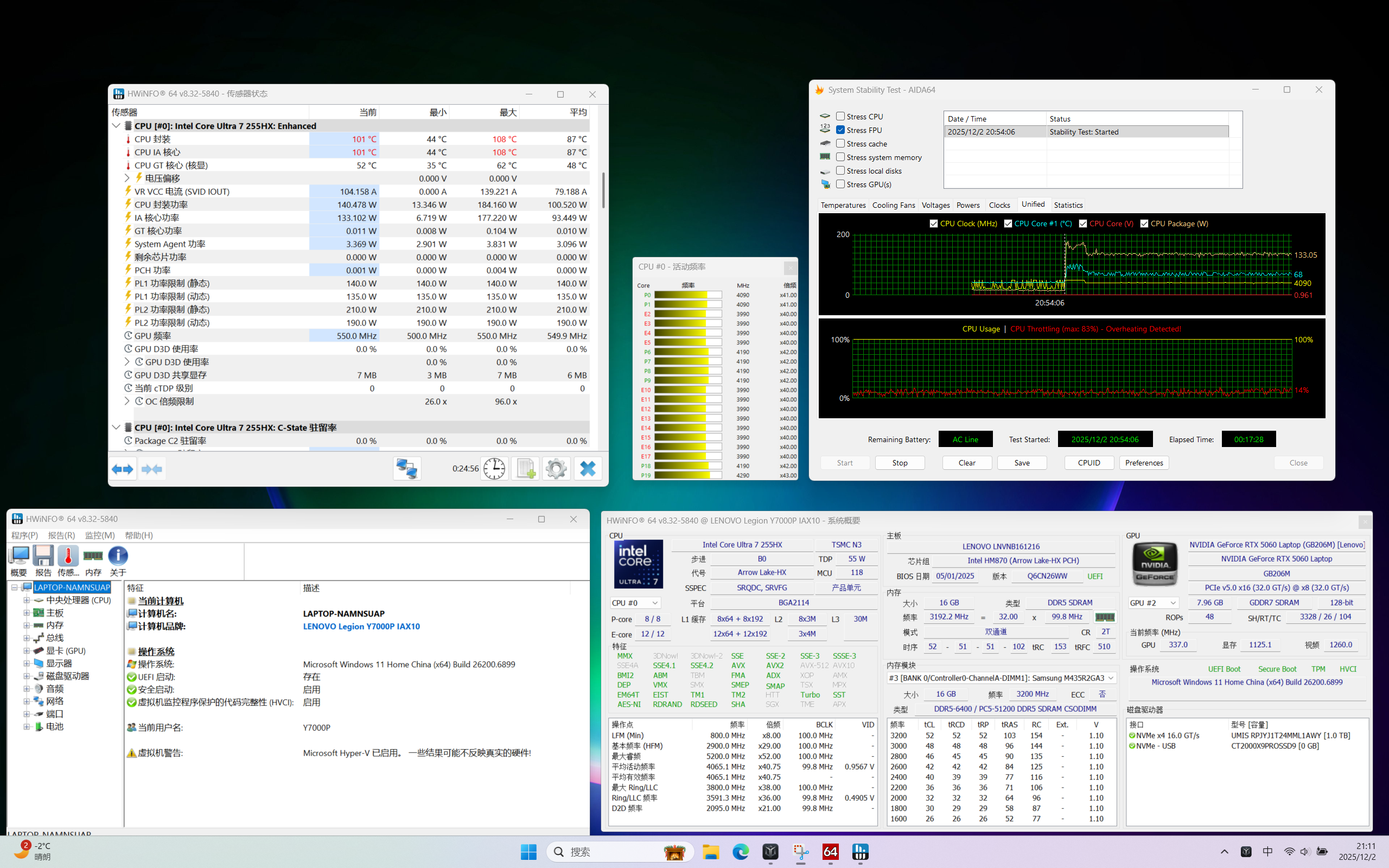 拯救者Y7000P CPU单烤(超能模式,室温22°C)