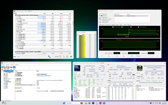 游戏本的核心竞争力终究要回归到性能释放上。三款机型均为同款核心硬件,但不同的散热系统设计与功耗调校策略,使得实际性能释放存在明显差异。我们通过烤机测试与实际游戏体验,对三款机型的性能表现进行了全面验证。