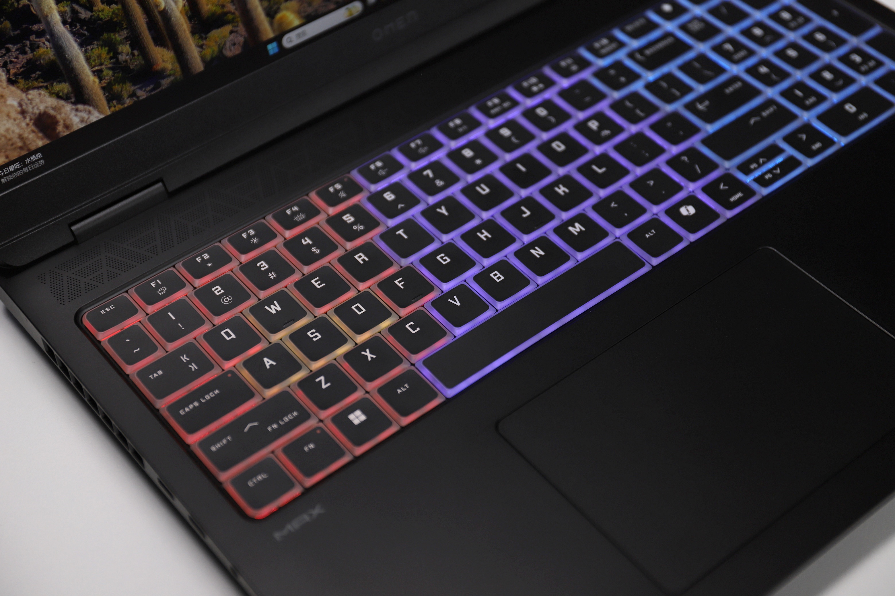 键盘灯效方面,三款机型均配备了背光键盘。不过,暗影精灵MAX的键盘采用了无边框键帽,这种无缝设计带来的手感相当舒适,而且,支持 26 键无冲,对手速快的游戏玩家更友好。此外,搭载的四区RGB灯效键盘,亮度高,且可通过OMEN Gaming Hub(OGH)调节个性化灯效,支持多种灯效模式切换,还能与游戏场景联动,氛围感拉满;