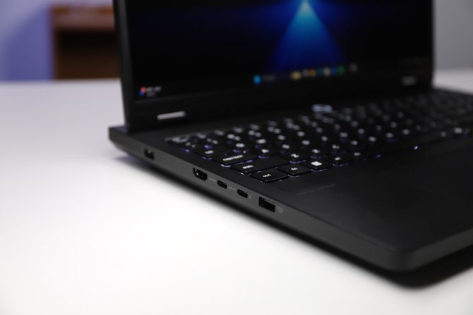 拯救者Y7000P 左侧的接口,依次为电源、HDMI、雷电4、USB-C、USB-A