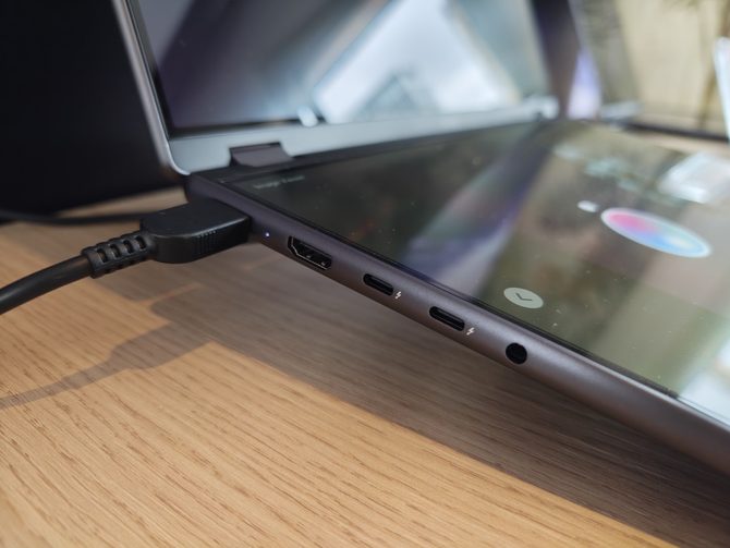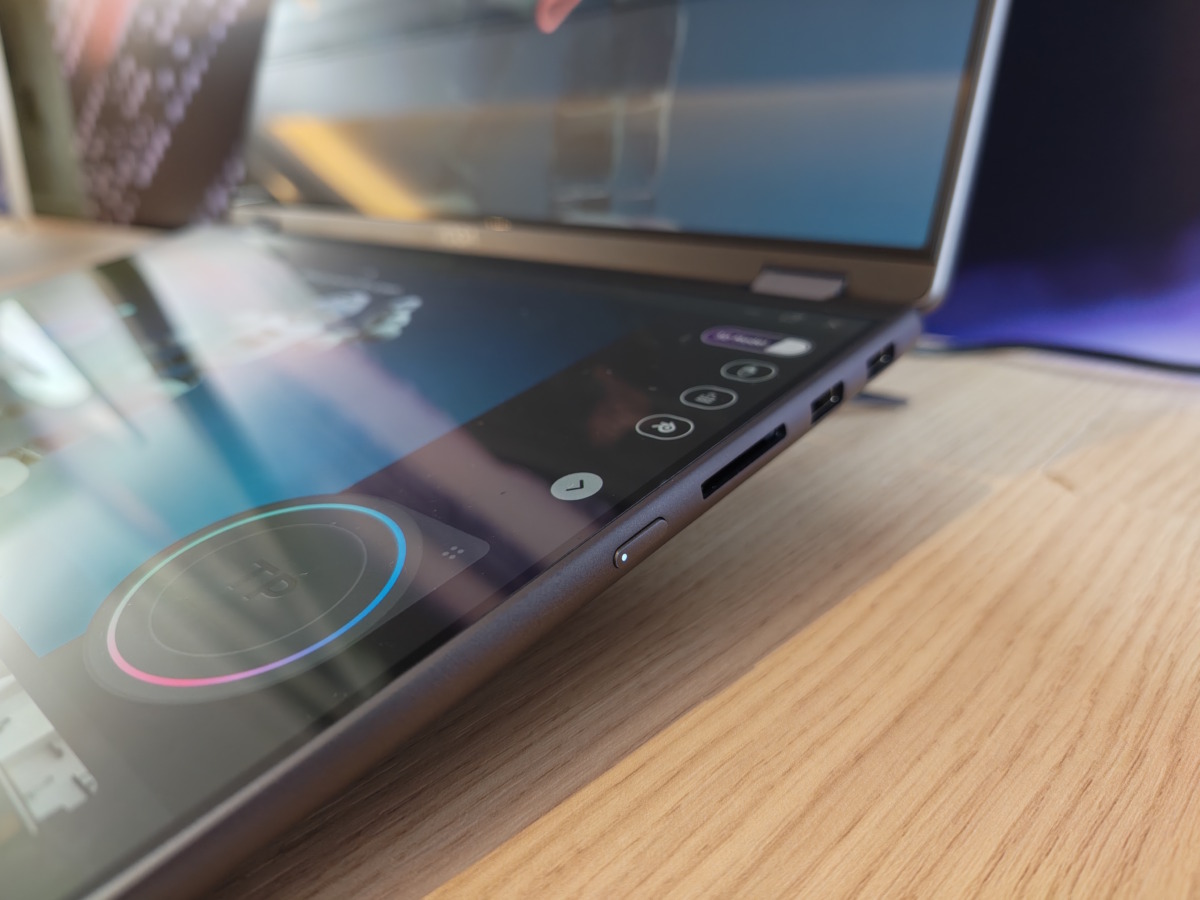 作为高端设备,Yoga Book Pro 3D 接口十分丰富:双雷电 4 接口、两个 10Gbps 速率的 USB Type-A 接口、一个 HDMI 2.1 接口、3.5mm 复合音频接口以及 SD 读卡器。