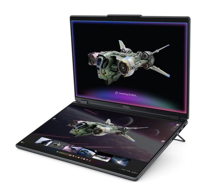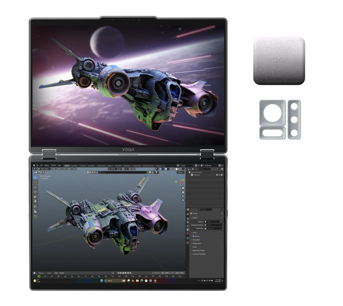 近期,不少厂商都推出了面向 3D 创作的笔记本电脑,其中大多还停留在概念阶段,最终真正上市的寥寥无几。而 Yoga Book Pro 3D 概念本,正是联想为 3D 创作者给出的解决方案。它看上去是在 Yoga Book 9i 这类现有双屏设备基础上改造而来,同样搭载双 OLED 屏幕,并配备高分辨率摄像头以实现 3D 追踪。