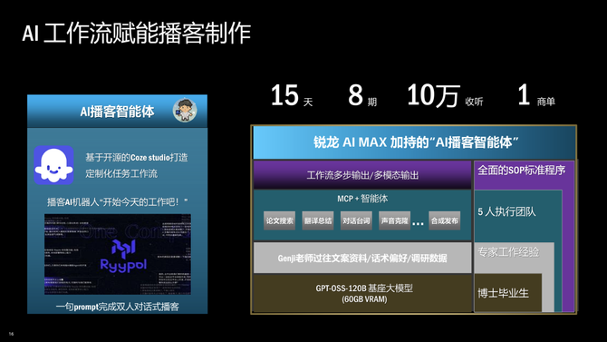 技术的价值最终落地于场景,在当天下午的合作伙伴分享环节,锐龙 AI Max和锐龙AI 400 系列的算力优势转化为各行业的实际解决方案,让 AI 从「技术概念」变为「生产力工具」。