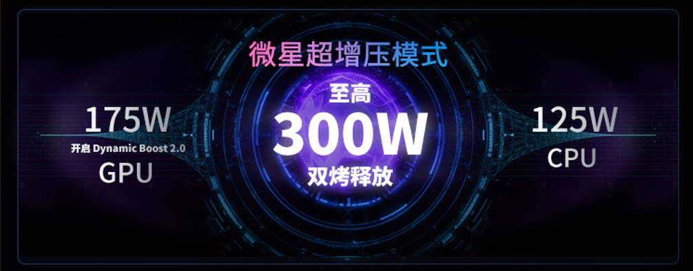 强劲的性能源于微星酷寒散热系统的高效解热能力:配备双风扇、五热管与四出风口设计,确保CPU和GPU长时间高能稳定运行,也有助于优化更低噪音的游戏体验。