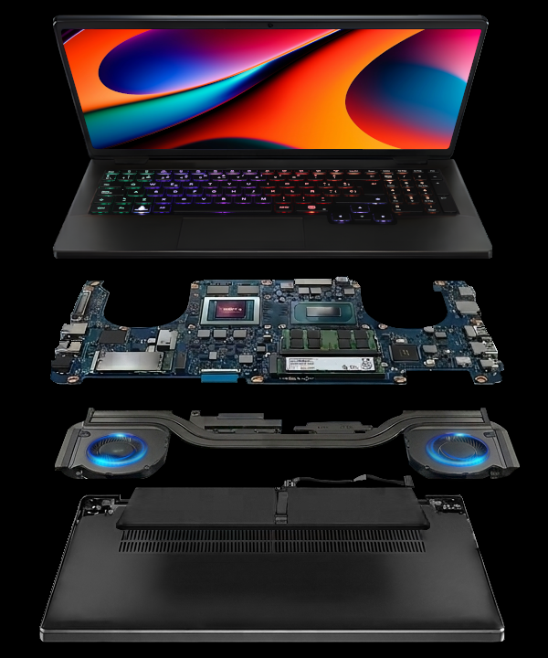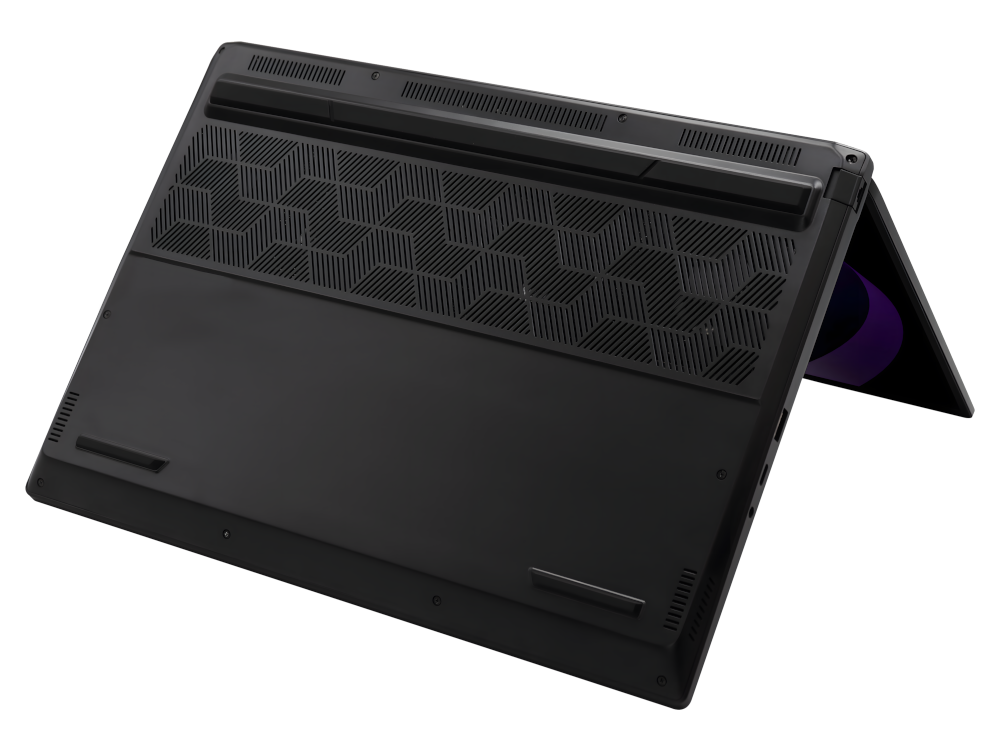 该机采用黑色金属机身,内置 99Wh 电池,重量 1.9kg,厚度 19.9mm。屏幕为 Oxide TFT-LCD 面板,2560×1600 分辨率、180Hz 刷新率、400nits 亮度、100% sRGB 色域。提供 2 条 DDR5 SO-DIMM 内存插槽和 2 个 M.2 PCIe Gen4×4 NVMe 盘位,配备联发科 MT7922A22M Wi-Fi 6E 无线网卡。