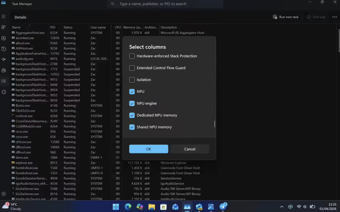 任务管理器新增NPU实时监控