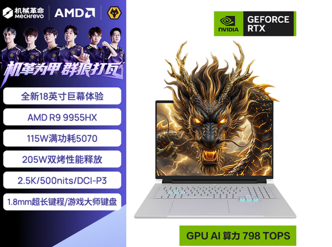 正所谓“机革为甲,群狼打瓦”。全新的18英寸巨幕下,机械革命苍龙18 Pro更具旗舰电竞之风。
