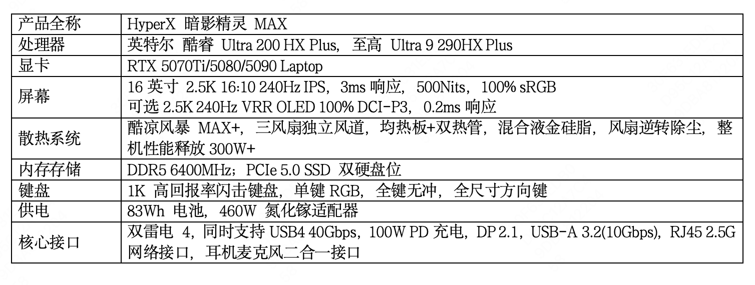 对于不妥协核心性能,想找一台能满血运行4K 3A大作、流畅开展电竞对战,同时兼顾视频渲染、直播推流,且无需折腾外设与后期维护的16英寸旗舰本,HyperX 暗影精灵 MAX的配置与性能表现值得入手,是2026年硬核玩家与创作党的必选装备。
