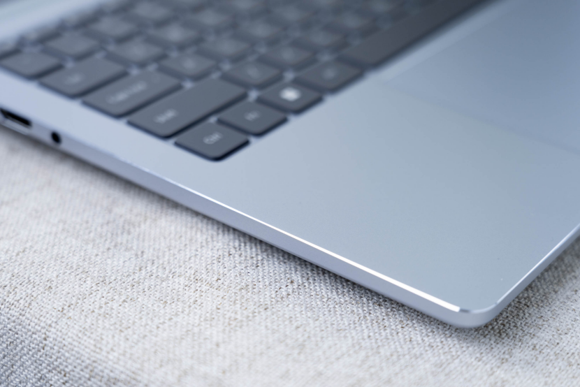 这次REDMI Book Pro拥有2个不同的尺寸,分别是14英寸和16英寸,本次我们拿到的为14英寸版本,这款笔记本电脑配色为晴空蓝,这款蓝色是淡淡蓝色,配合上全金属的一体化压铸机身,做工非常出色,经过精密喷砂的,触感十分细腻,完全是“Pro”级的高水准。