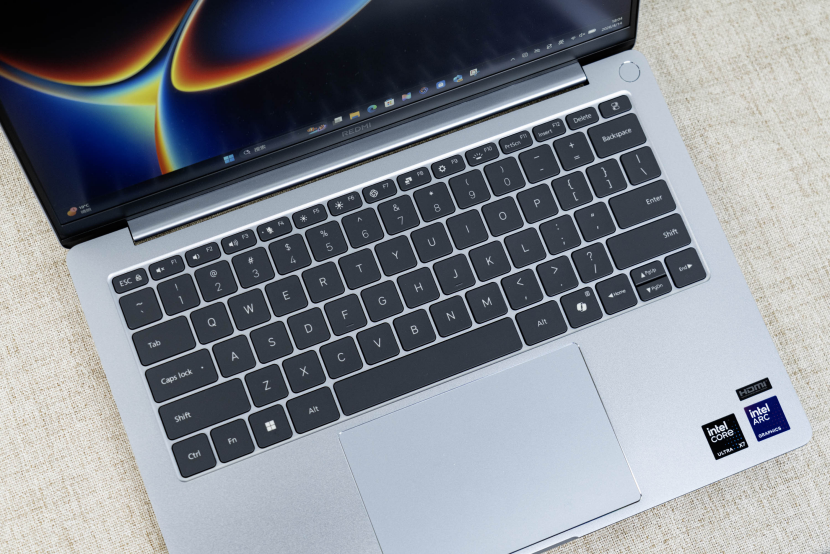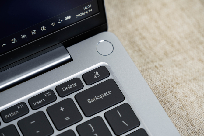 另外屏幕的边框做了两侧收窄的设计,配合上更小的下巴和顶栏的,让这款笔记本电脑的屏占比变得更高,视觉冲击力表现属于较为优秀的水平,另外屏幕的顶部是前置摄像头,并且还有支持Windows Hello刷脸解锁笔记本电脑,REDMI Book Pro 2026的开关机按键同样集成了指纹按键,在安全性表现上,表现不错。