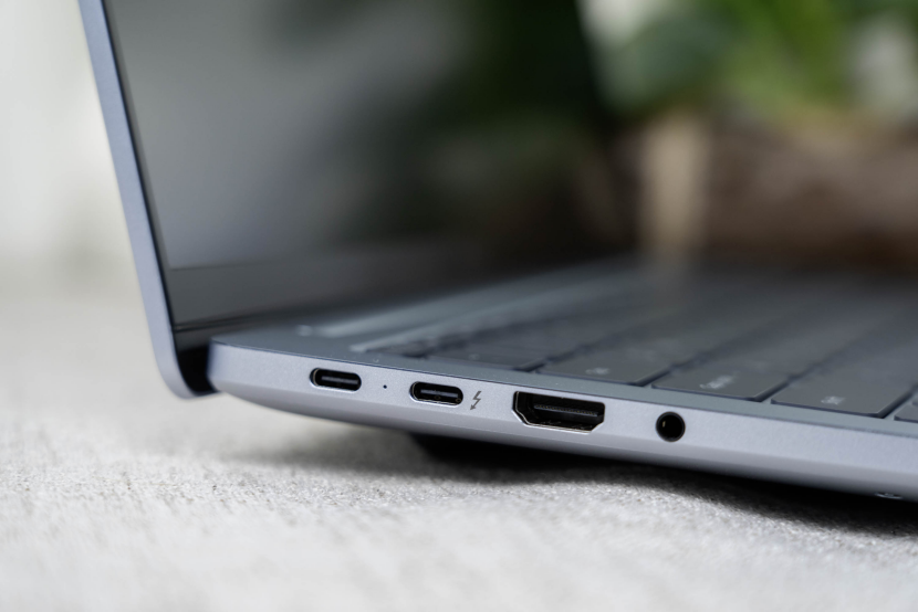 接口部分,REDMI Book Pro 2026提供了2个C口,其中一个为全功能的Type-C接口,一个为雷电4接口,并且还有1个HDMI2.1接口和1个3.5mm接口,机身的右侧则是2个USB-A 3.2 Gen1接口,这样的接口配置在同类型的轻薄本当中,完全是大满配的存在。