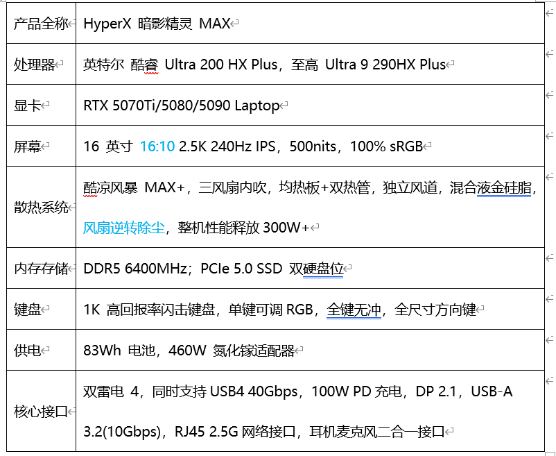 先说顶配的HyperX 暗影精灵 MAX 旗舰游戏本。目标用户很明确:就是那些追求"满血性能"的硬核玩家。在玩《黑神话:悟空》、《生化危机9》等3A大作的时候,希望帧数稳稳当当不掉链子。那这台HyperX 暗影精灵 MAX就是为你准备的。