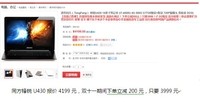 同方锋锐V430笔记本早在7日就已经打响促销战了,这款聚划算定制机型原价2699元,团购价只要1598元,Intel双核、2GB内存及320GB硬盘的配置也能满足用户的入门级应用,是学生用户的首选推荐!1500左右也能买到属于自己的笔记本