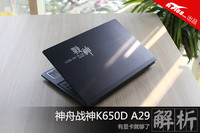 - 有显卡就够了 神舟战神K650D A29解析战神K650D A29 D3是一款一款有着双重个性的产品,作为一个品牌的体现,设计上有自己非常明显的风格,很难得,作为一款游戏设备,敢于向常规的模式挑战并取得了真实的成功,也值得骄傲和自豪。 汪克华 · 2015-10-15 00:00