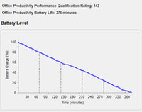 此次测试的机型为3芯+3芯的组合,其MobileMark 2012办公模式成绩为376分钟(6小时16分钟),这样的电池使用时间对于重量仅1.4kg的超轻薄产品来说已经相当不错,如果选择更大容量的电池组合方案,昭阳K2450的电池使用时间将达到10小时。